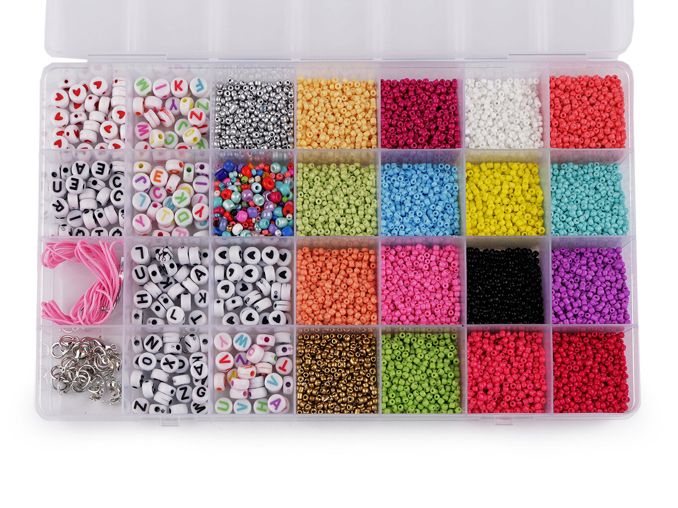 - 2 přihrádky obsahují srdíčkové korálky.