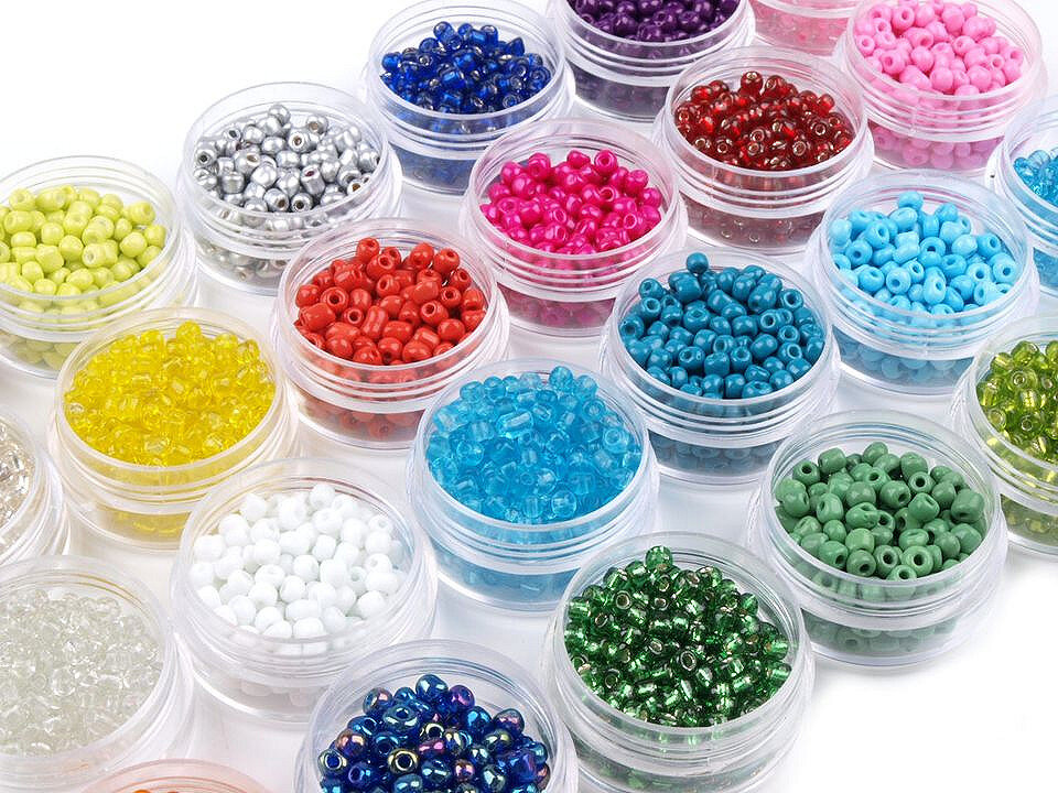 Sada obsahuje 24 dóziček s různo barenými rokajl korálky o průměru 4 mm. Každá dóza má 8 - 12 g.